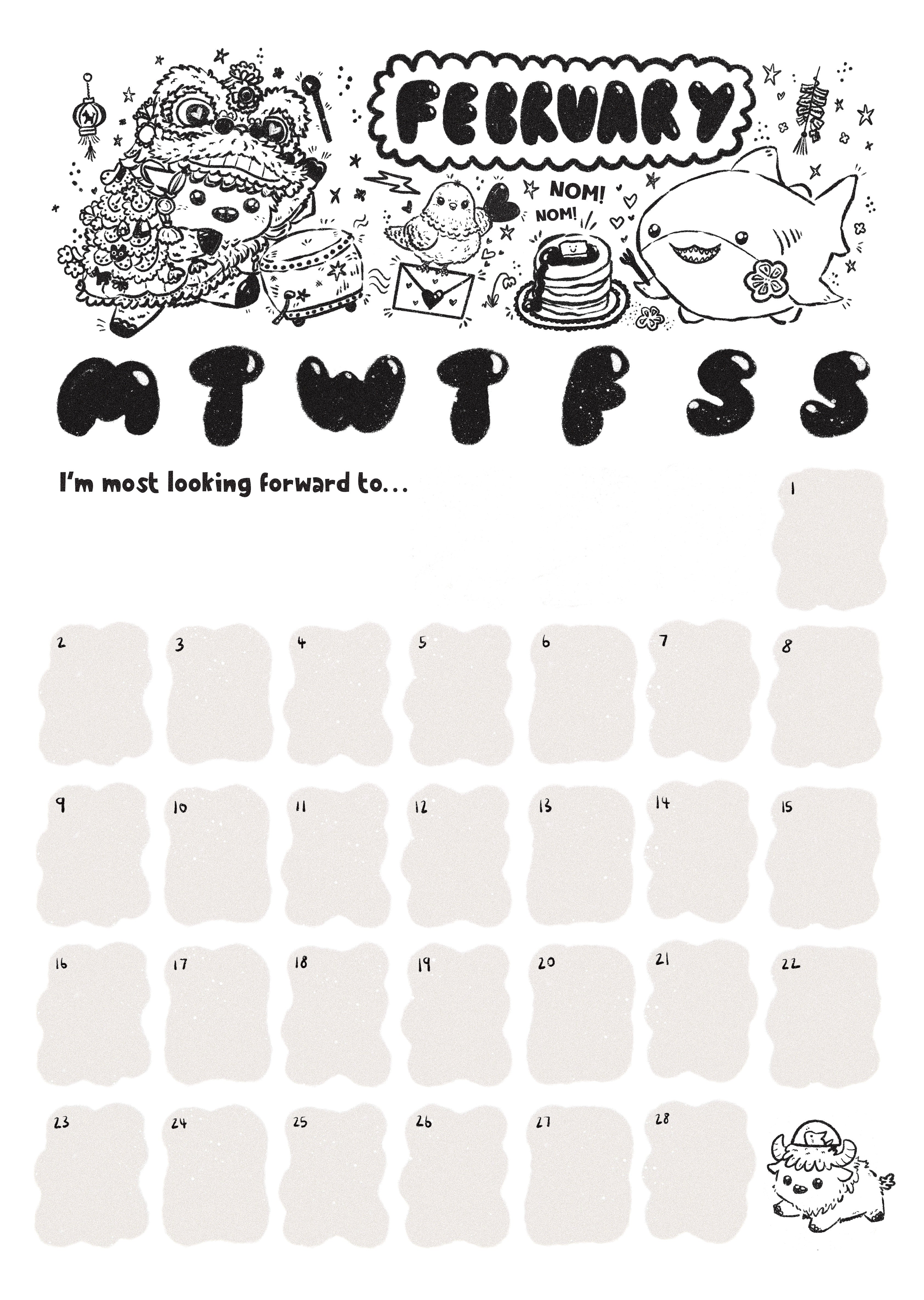 Download the cutest print at home calendar sheet for February for just £1!